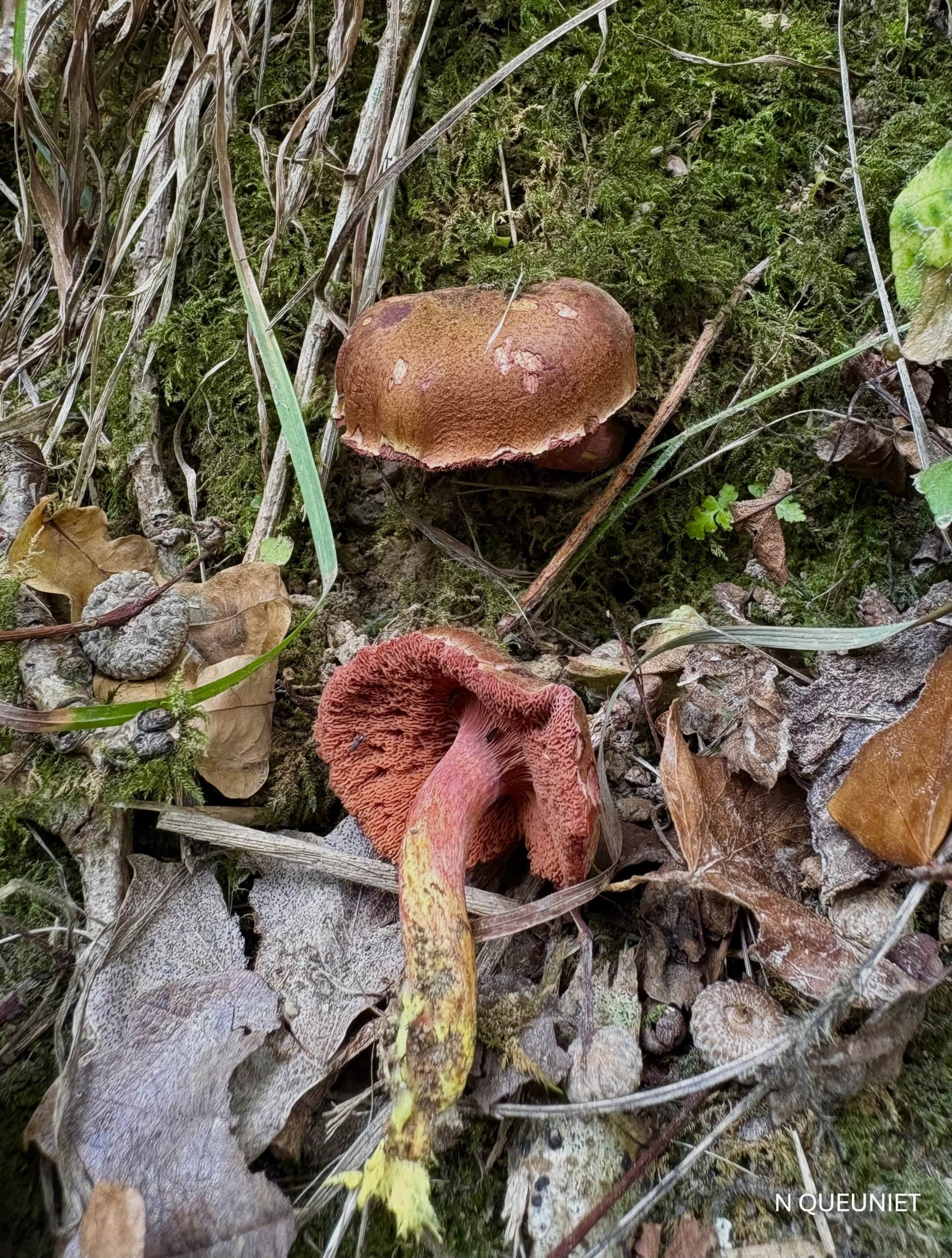 Champignons du Cotentin BOLETS s.l. : Boletus aereus (Fiche) Boletus aestivalis Boletus edulis Butyriboletus fuscoroseus Caloboletus radicans Chalciporus rubinus Gyroporus castaneus (Fiche) Hemileccinum impolitum Hortiboletus rubellus Imleria badia Imperator rhodopurpureus (Fiche) Leccinellum crocipodium Leccinellum pseudoscabrum Leccinum aurantiacum Leccinum duriusculum Leccinum scabrum (Fiche) Neoboletus erythropus Phylloporus pelletieri Porphyrellus porphyrosporus (Fiche) Pseudoboletus parasiticus Rubroboletus le-galiae Strobilomyces strobilaceus (Fiche) Suillellus luridus Suillellus queletii (Fiche) Suillus bellinii (Fiche) Suillus collinitus Suillus granulatus Suillus grevillei Suillus luteus (Fiche) Xerocomus subtomentosus